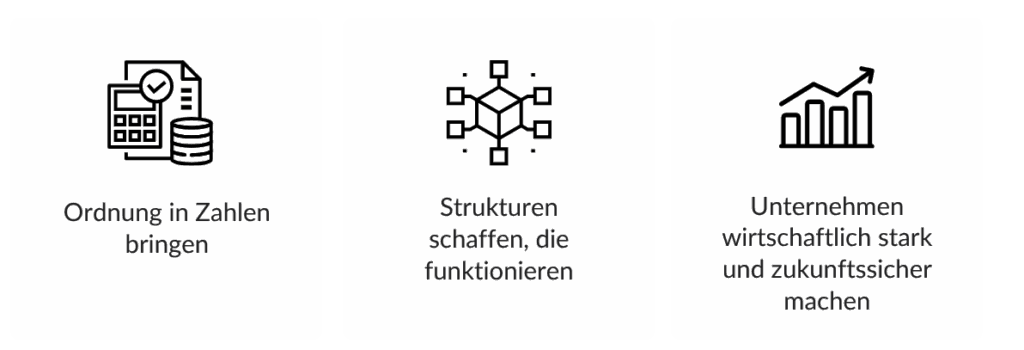 Genau hier setzen wir an. Mit klaren Strukturen, verlässlichen Prozessen und einem umfassenden Verständnis von Unternehmenszahlen. Unsere Mission: Ordnung in Ihre Zahlen bringen und Strukturen schaffen, die wirklich funktionieren.